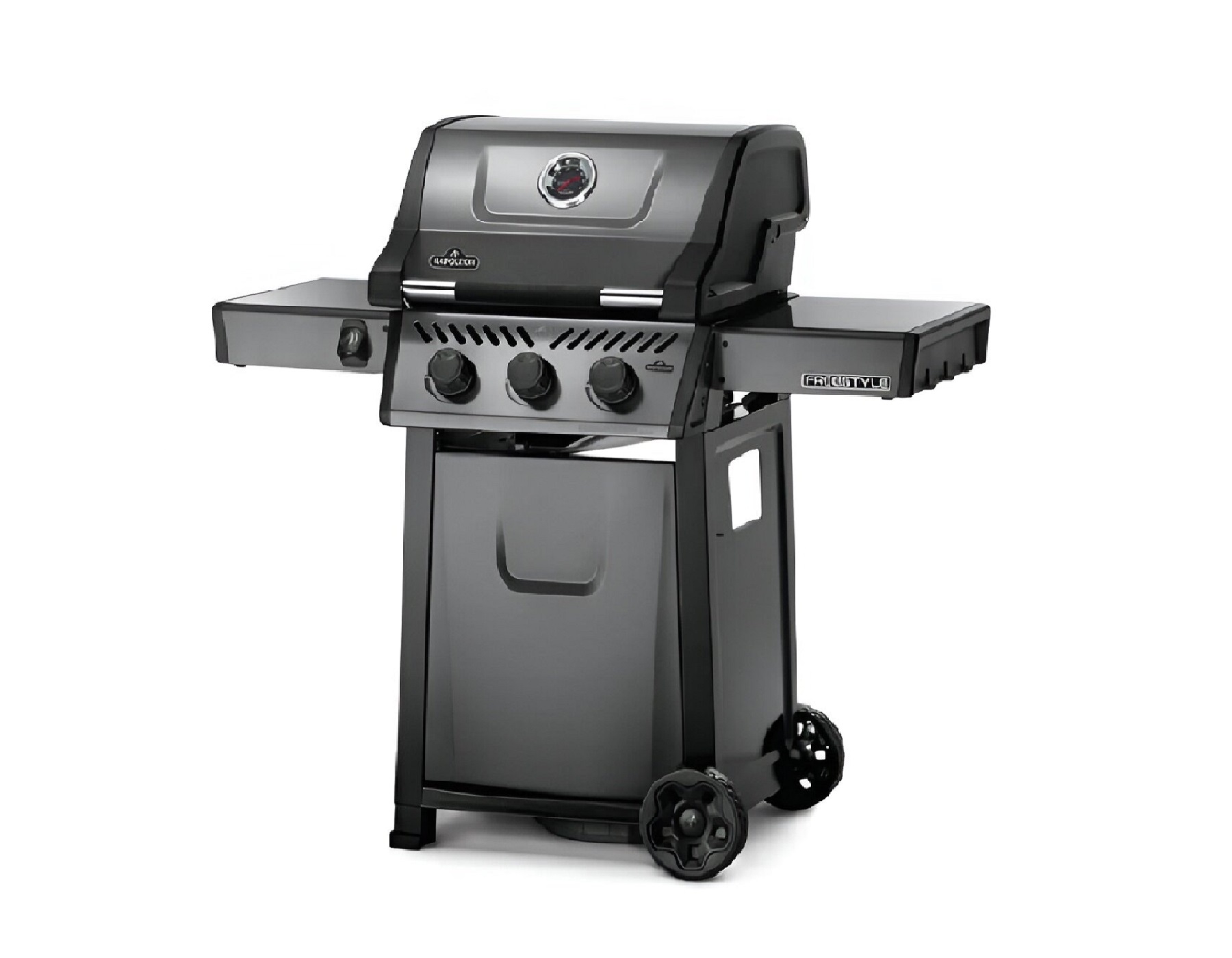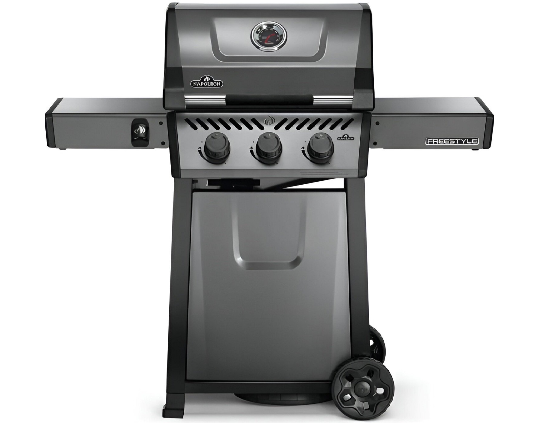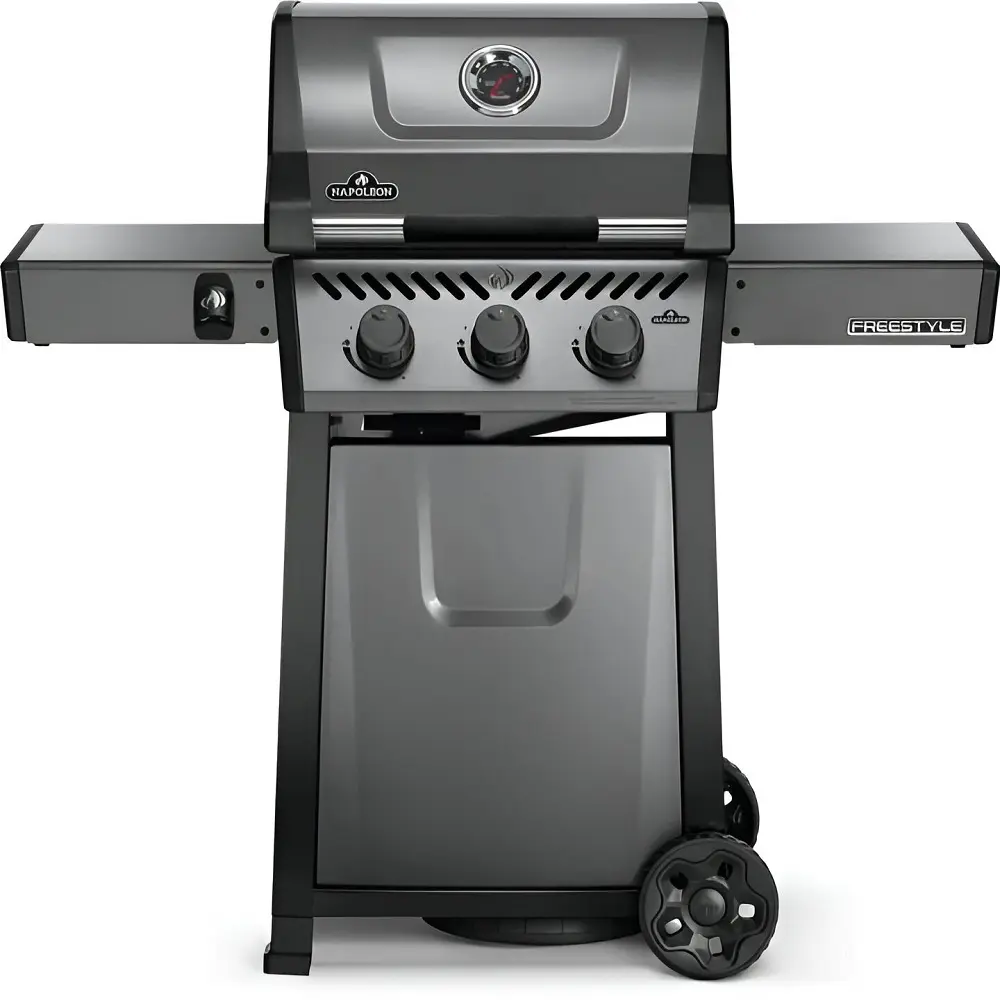 Napoleon Barbecue a Gas Freestyle F365 GT è un barbecue compatto con caratteristiche di alta qualità e un valore imbattibile. Acceso dal sistema di accensione istantanea JETFIRE che accende i bruciatori principali con un getto di fiamma facile e costante. Le griglie di cottura in ghisa smaltata e porcellanata permettono di ottenere una scottatura perfetta. Tre bruciatori in acciaio inox forniscono un calore che può essere facilmente controllato da manopole ergonomiche e monitorato dall’indicatore di temperatura incorporato. Le robuste ruote consentono a questo barbecue di andare dove c’è movimento, mentre i ripiani laterali, facili da ripiegare e dotati di ganci per gli attrezzi e di un apribottiglie, fanno sì che il Freestyle risponda al tuo stile di vita e al tuo spazio.