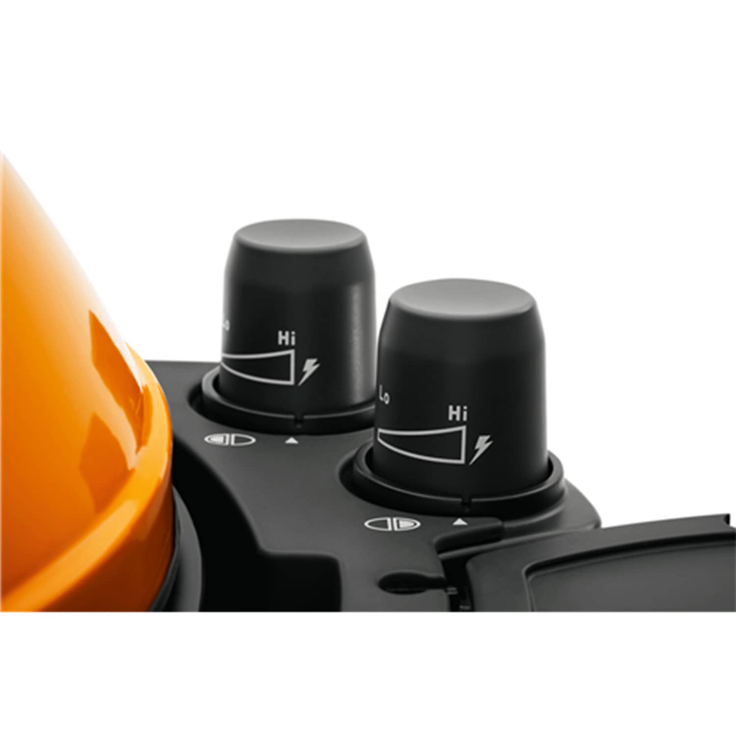 Il doppio controllo della temperatura assicura una distribuzione uniforme del calore senza fiammate, mentre il termometro integrato garantisce risultati perfetti. Il coperchio con assistenza a molla si abbassa dolcemente per un funzionamento fluido e sicuro. Il design antivento è stato studiato per mantenere il calore all’interno, impedendo che le condizioni atmosferiche ostacolino la preparazione dei vostri pasti.