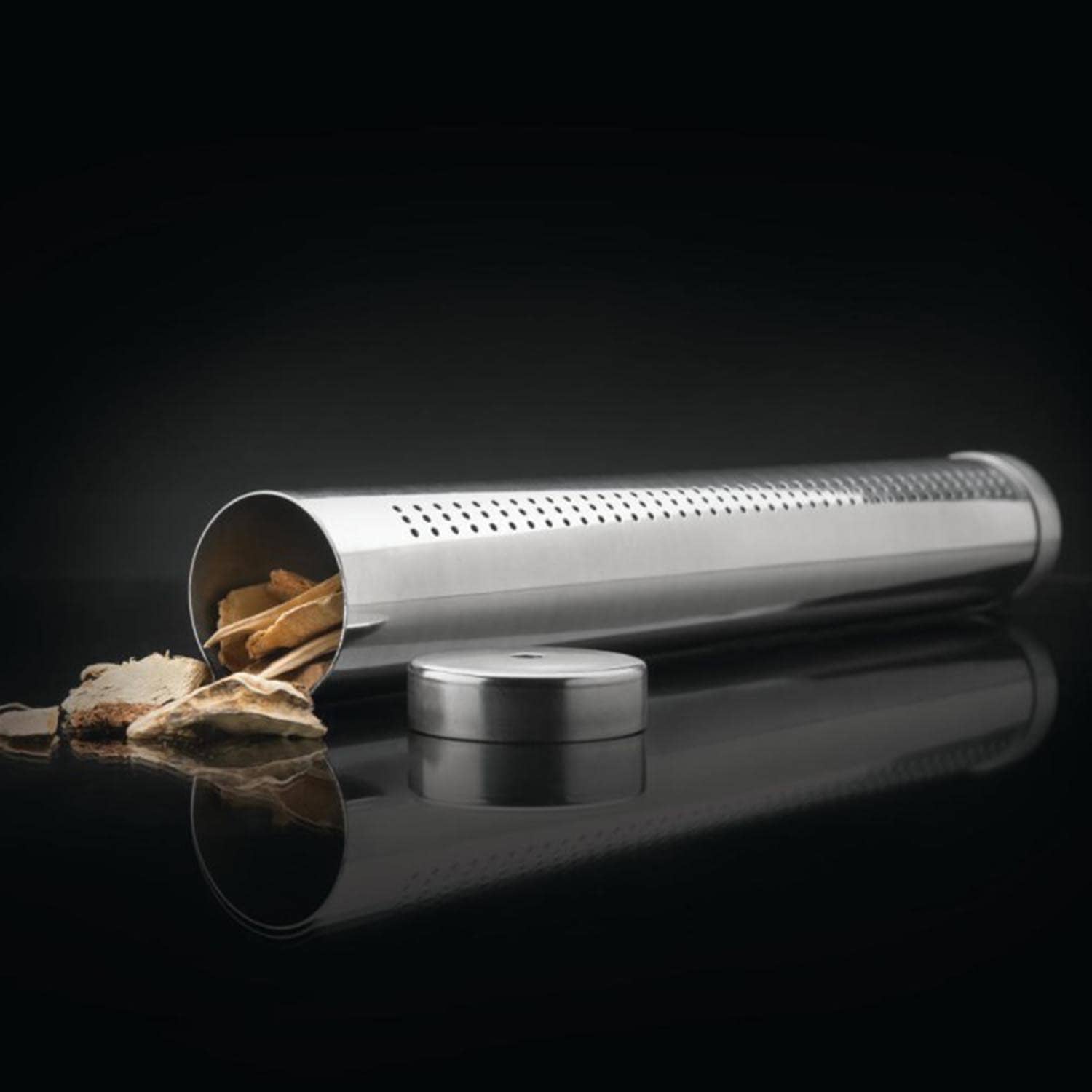 L’acciaio inossidabile ultra resistente è lavabile in lavastoviglie e facile da usare. Basta rimuovere il tappo terminale, riempire con trucioli di legno (ammollati o asciutti), riposizionare il coperchio e collocare il Napoleon Affumicatore in acciaio inox PRO sopra un bruciatore acceso. Questo accessorio può essere utilizzato anche in un barbecue a carbonella posizionandolo sopra o vicino alla brace accesa. Quando il tubo smette di fumare, è il momento di sostituirne il contenuto. L’affumicatore sarà rovente, quindi utilizza guanti resistenti al calore per maneggiarlo. È l’ideale per aggiungere un autentico sapore di affumicato a carni, verdure, frutta, formaggi, dessert e pesce.