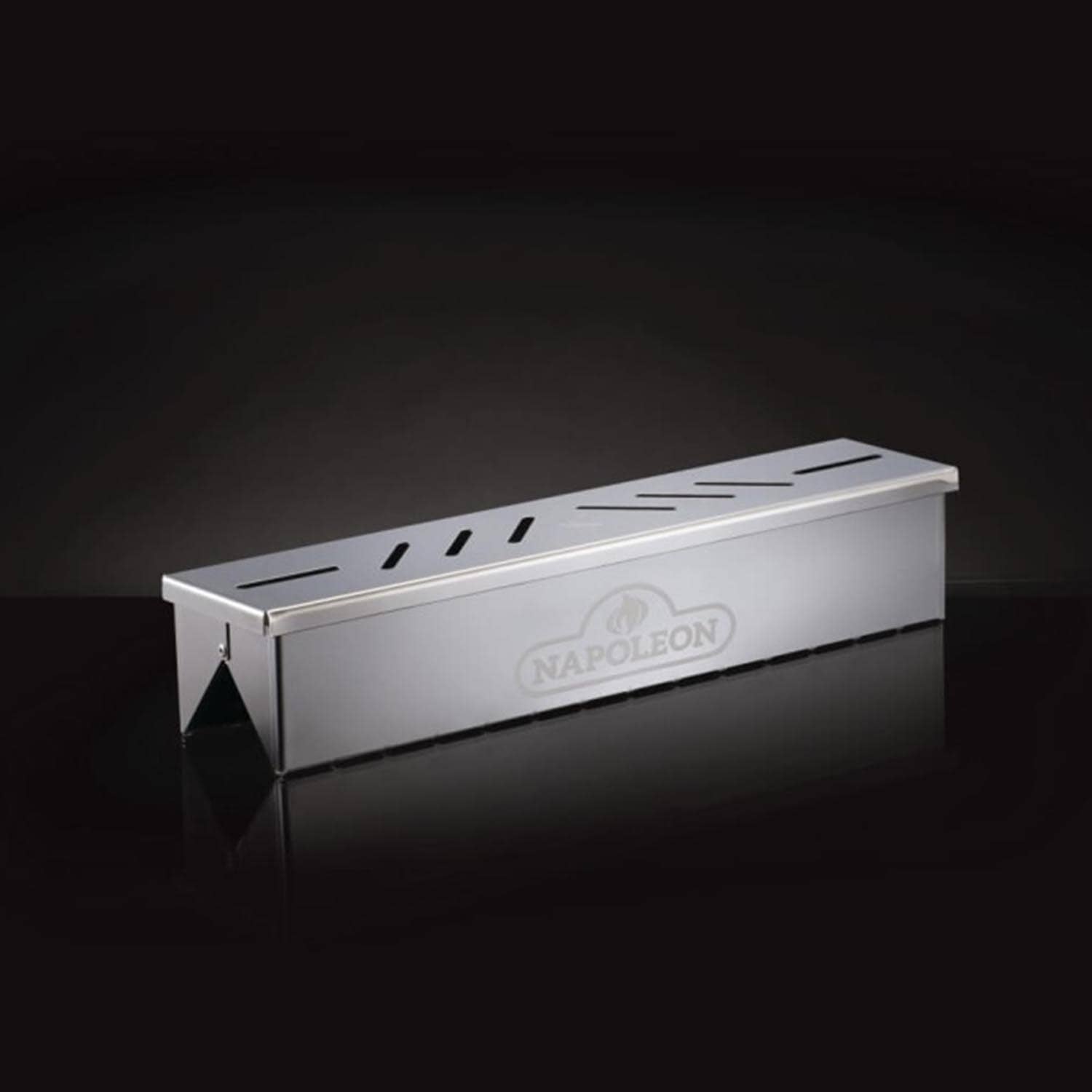 Realizzato in resistente acciaio inossidabile, questo affumicatore sostituisce le piastre di calore del barbecue direttamente sopra un bruciatore acceso. Per utilizzarlo, rimuovi le griglie di cottura e una piastra di calore; posiziona quindi il Napoleon Affumicatore per serie PRO-ROUGE sui supporti delle piastre. Riempi la scatola ad alta capacità con i tuoi trucioli o pezzi di legno preferiti e chiudi il coperchio. Riposiziona le griglie e accendi il bruciatore sottostante al minimo. Il legno inizierà a bruciare lentamente producendo fumo. Per ottenere i migliori risultati e quel delizioso aroma affumicato, il cibo deve rimanere sul barbecue per almeno 20 minuti.