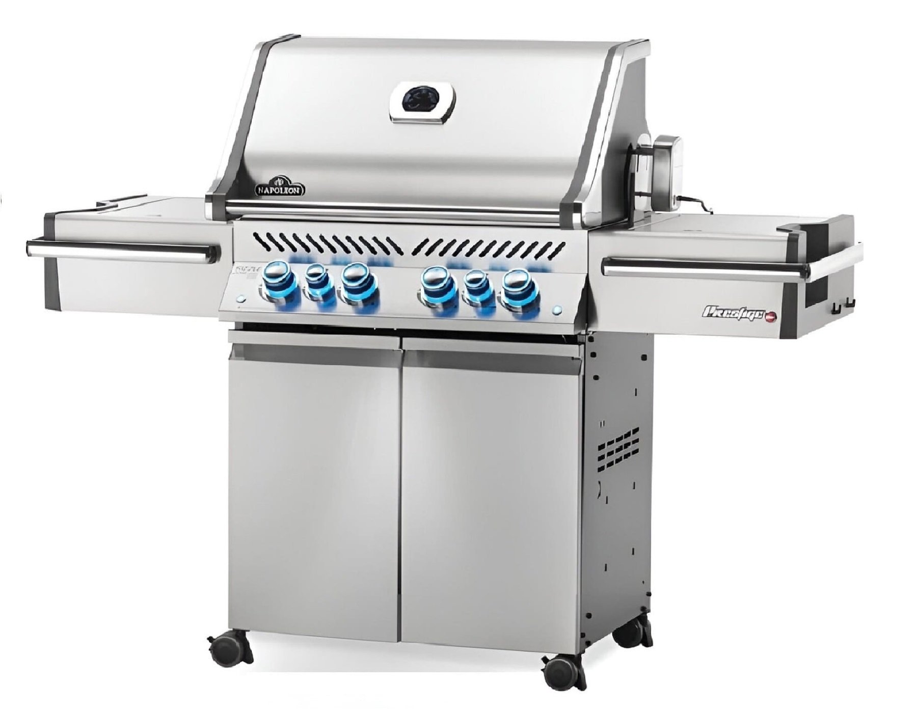 Napoleon barbecue a gas Prestige PRO500RSIB.Questa griglia elegante è impressionante come il suo titolo, con bruciatori posteriori e laterali a infrarossi è un barbecue in stile professionale, costruito con caratteristiche di alta qualità e ad alte prestazioni che rendono la grigliata facile e impressionante. Il corpo in acciaio inox lucido assicura una lunga durata contro le intemperie, mentre i dettagli cromati aggiungono un tocco di lusso.