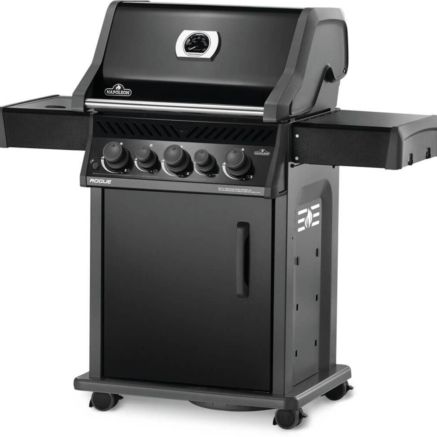 Il Napoleon Rogue 425 RSB è un vero tuttofare: equipaggiato sia con un bruciatore laterale a fiamma viva per salse e contorni, che con un bruciatore infrarossi posteriore per arrosti allo spiedo succulenti. E non è tutto: il set girarrosto motorizzato è incluso, permettendoti di preparare polli, costolette e arrosti con facilità professionale.