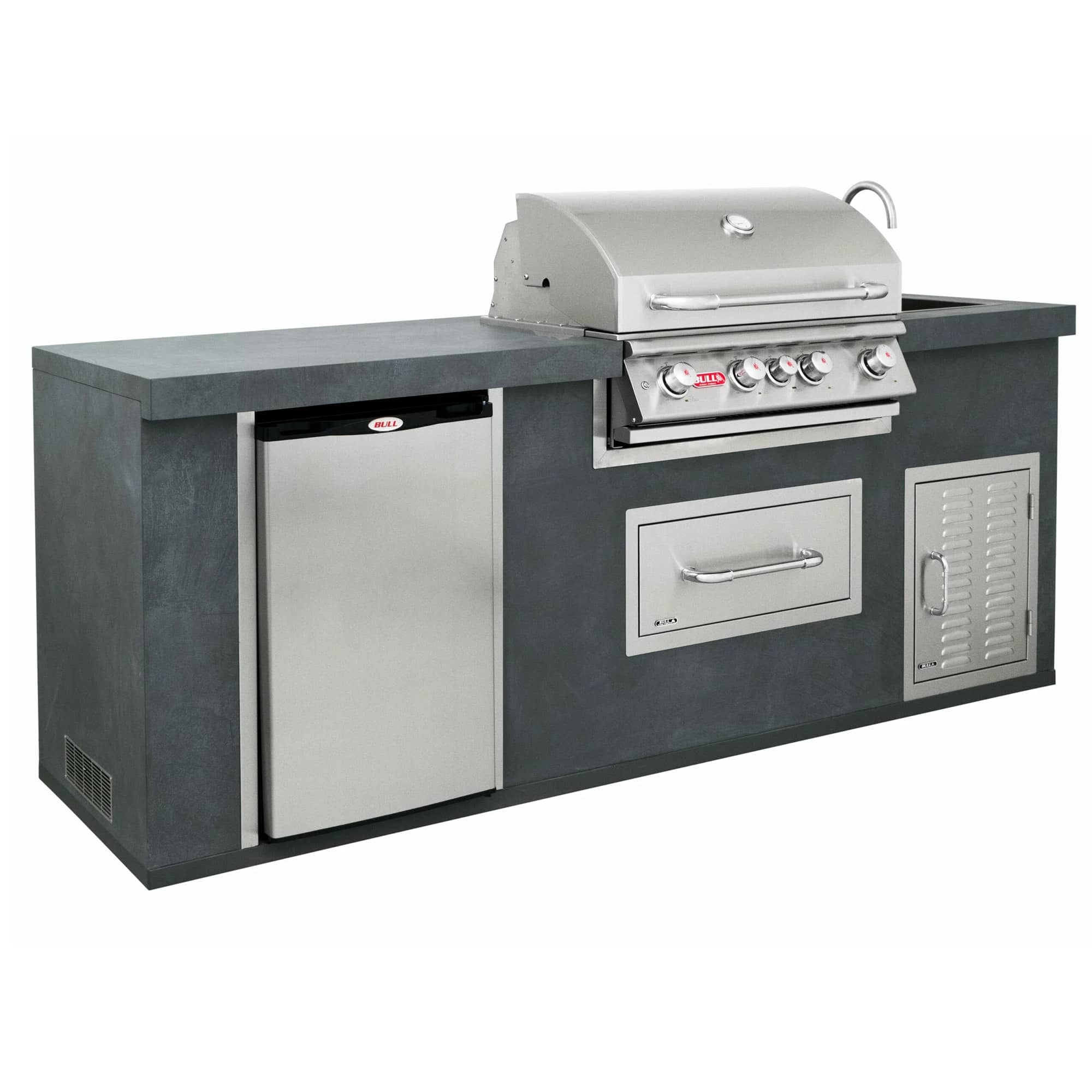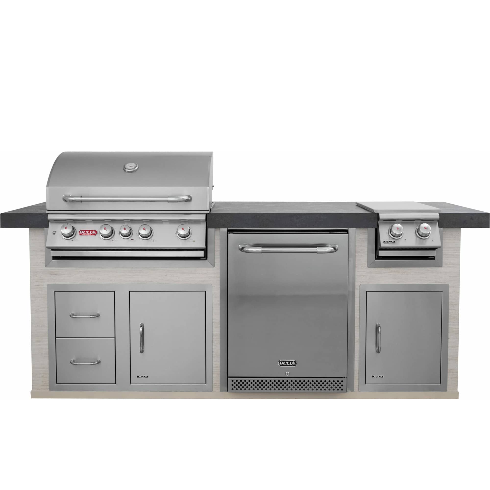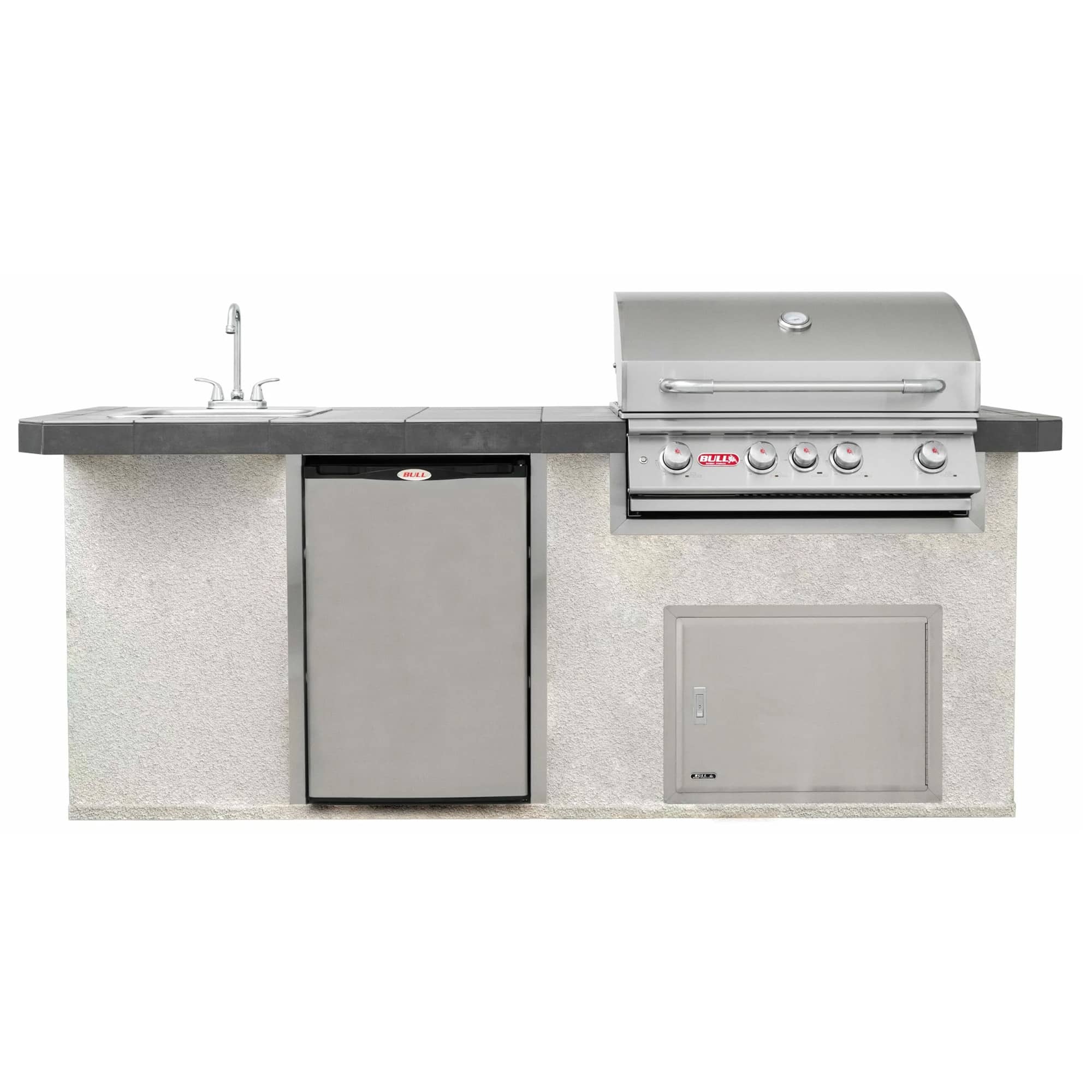Le cucine da esterno Bull ora vengono fornite con un kit di strumenti per la cura e la manutenzione. Vengono inoltre fornite complete di una copertura invernale su misura Sunbrella Surlast montata, materiali per la pulizia e il ripristino. Il prezzo include anche il precablaggio, il sifone per scarichi, tutti i collegamenti del gas per le apparecchiature GPL e le spese di imballo.