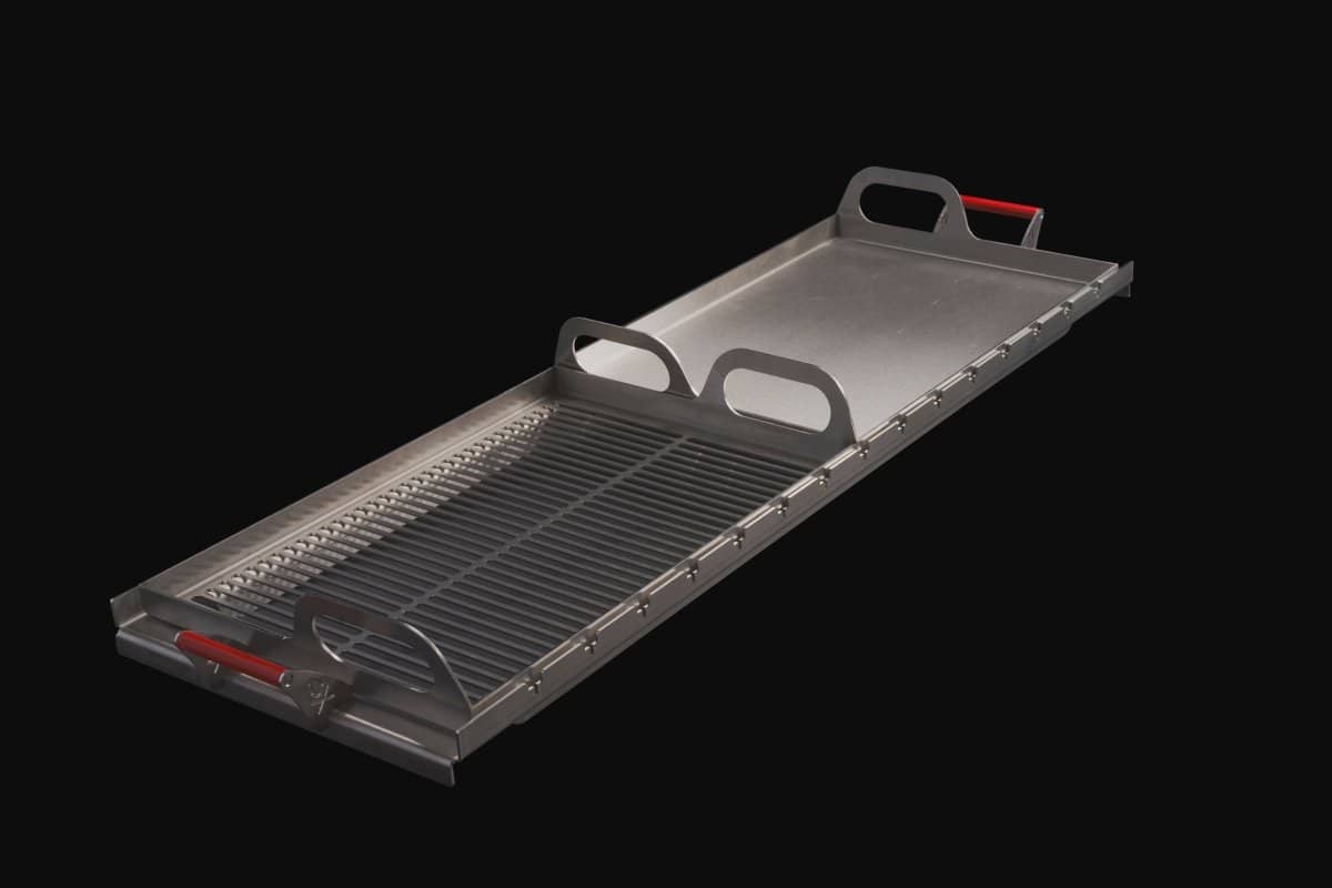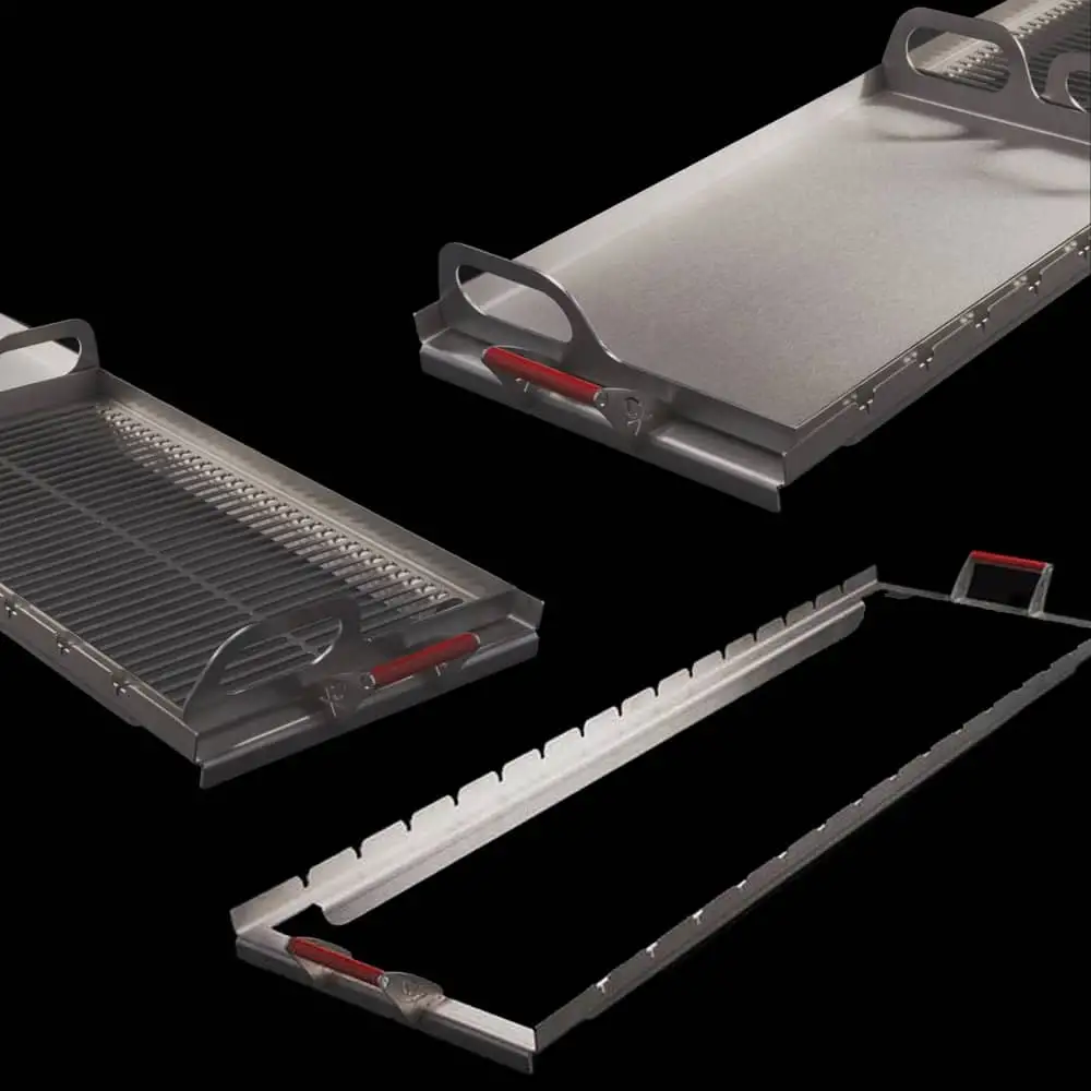 Combinando il Telaio in acciaio (Frame), la Griglia in acciaio (Grill Grate) e la Plancha, questo set ti offre una versatilità senza pari: grigliare, arrostire, cuocere a fuoco diretto o indiretto, tutto con un solo sistema.
